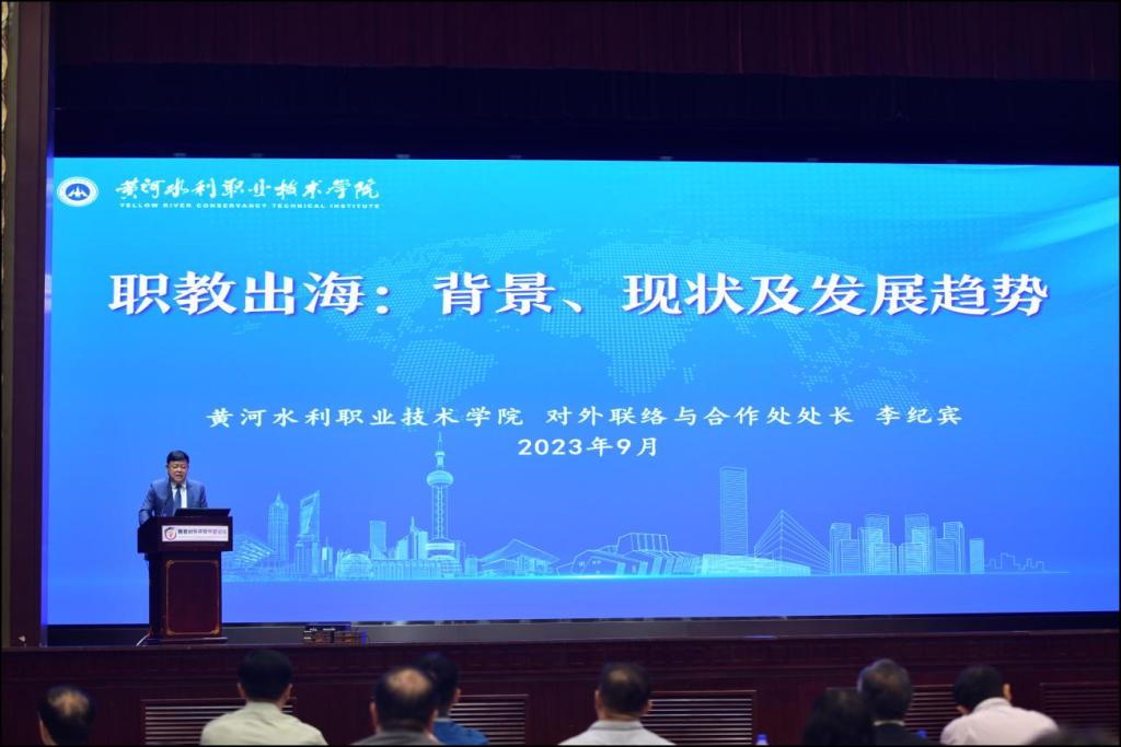 李纪宾作题为《职教出海:背景、现状及发展趋势》的发言。介绍了在当前新时代教育对外开放背景下“职教出海”对国家外交战略布局、教育强国建设的重要意义;深度剖析“职教出海”在宏观、中观和微观层面上所存在的问题,并以我校赞比亚大禹学院优秀办学成果为例,阐述一体多点四融合的发展新模式。