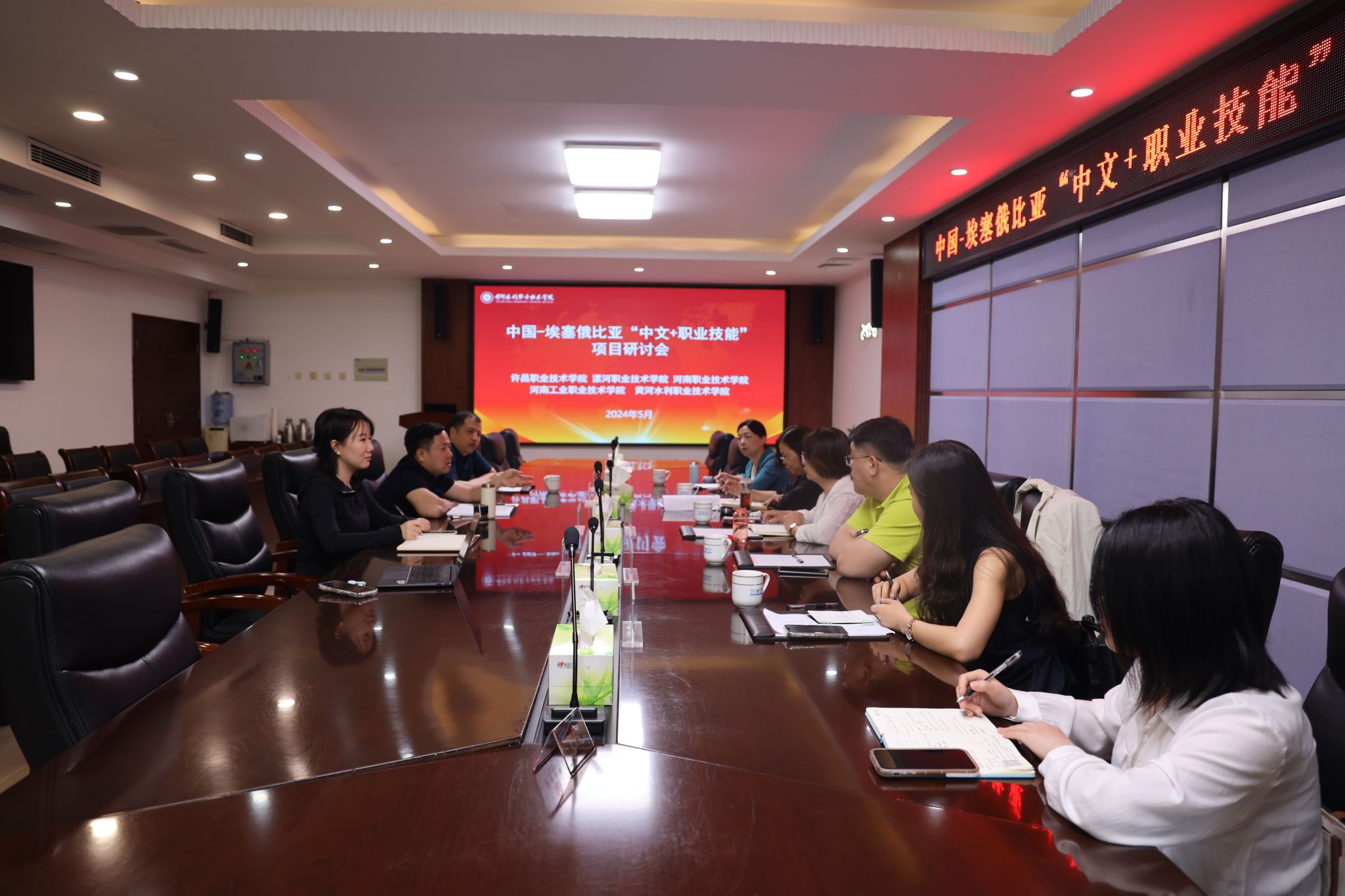 5月10日下午,我校在行政楼第一会议室召开中国-埃塞俄比亚“中文+职业技能”项目研讨会。许昌职业技术学院科研外事处处长李娜、漯河职业技术学院科研处处长张津、河南工业职业技术学院科技外事处处长曹双梅、河南职业技术学院国际合作交流处副处长董岳磊,我校对外联络与合作处处长姬尧、副处长李名亚参加了本次会议。