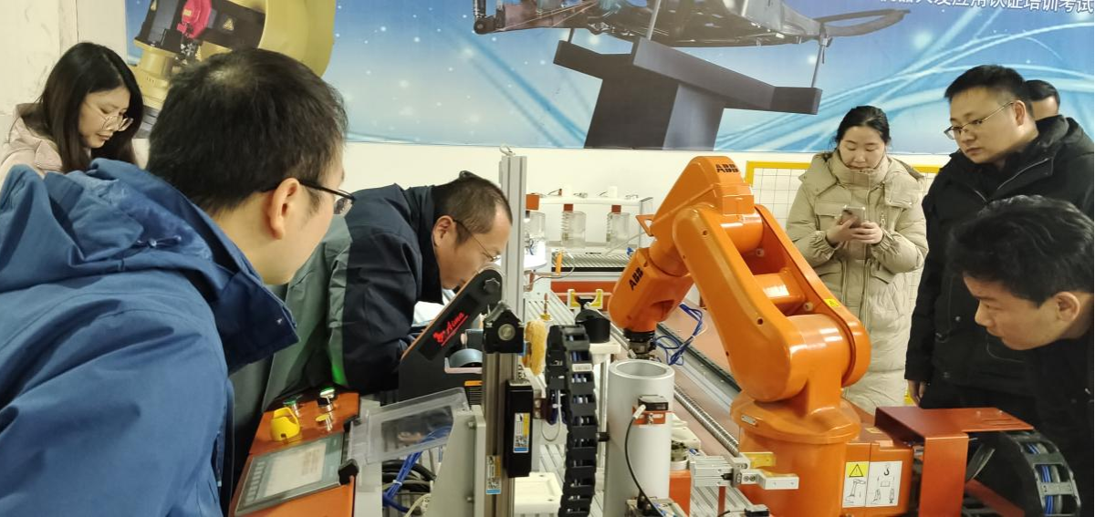 我校工业机器人实训室在2017年获评教育部工业机器人应用人才培养中心,2023年成为华中地区首家德国莱茵TÜV工业机器人培训考试中心。下一步,工业机器人实训室将充分发挥自身资源优势,积极承担社会责任,通过校企培训交流,加强校企合作,进一步推动职业教育与社会需求的紧密结合,提升学员的职业能力,促进个人成长与发展。