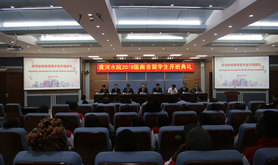 杨晓春讲话指出,党的十九大报告中提出的新时代“加强中外人文交流、促进“一带一路”国际合作和构建人类命运共同体”等有关政策精神,已成为中国发展国与国之间关系的重要指导。近年来,中国南非两国高层互访不断,民众交流日益频繁。今年1月,中国-南非职业教育合作联盟正式成立,50位南非学生是该联盟框架下学生交流项目进入黄河水院学习的第一批学生,希望南非留学生要做有诚信、守纪律的好学生好伙伴,成为南非相关专业发展的先行者和加强中国和南非人文交流的友好使者。