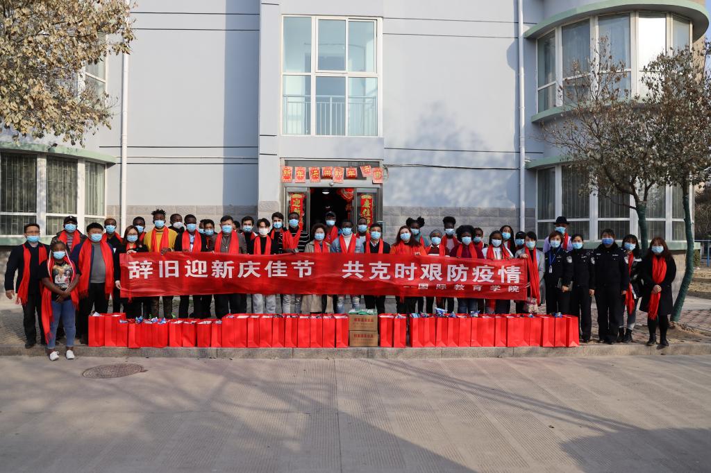2021年2月8日,新春佳节即将来临之际,校党委书记周保平副校长菅浩然及党委宣传部、对外联络与合作处、国际教育学院负责人留管教师,市公安局出入境管理大队及金耀派出所民警一行来到留学生公寓,看望慰问在校留学生,为他们送去节日的问候和新春的祝福,并赠送新年礼物。