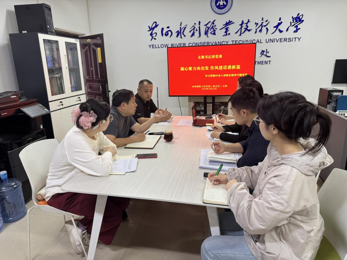 2025年5月20日下午,对外联络与合作处(校友会)支部在行政楼101会议室开展学习贯彻中央八项规定精神专题支部书记讲党课活动。