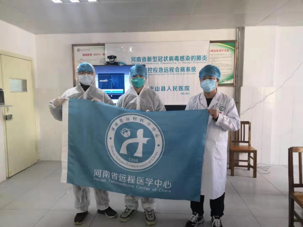 Chai Jiaye (first from the left) completes the system in Guangshan County People’s Hospital