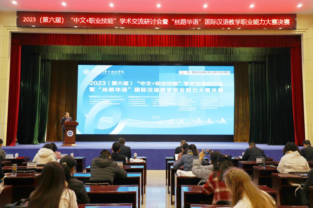 On December 8, the 2023 (6th) “Chinese + Vocational Skills” Academic Exchange Seminar & the Finals of the “Silk Road Chinese” International Chinese Language Teaching Professional Competence Competition, organized by the China Branch of Association of Silk Road Countries Universities and Consulting Companies, the Chinese Bridge Club in Cairo, Egypt, and the Organizing Committee of the EducationPlus International Summit for Vocational Education and Training, was successfully held at YRCTI. Deputy Standing Chairman Jiang Yilin and Secretary-General Dong Jin of the China Branch of Association of Silk Road Countries Universities and Consulting Companies, along with YRCTI’s Vice President Jian Haoran, attended the seminar. In addition, more than 100 participants from 35 higher vocational colleges across China, including leaders, experts, scholars, teachers, and representatives of international students, also attended the seminar.