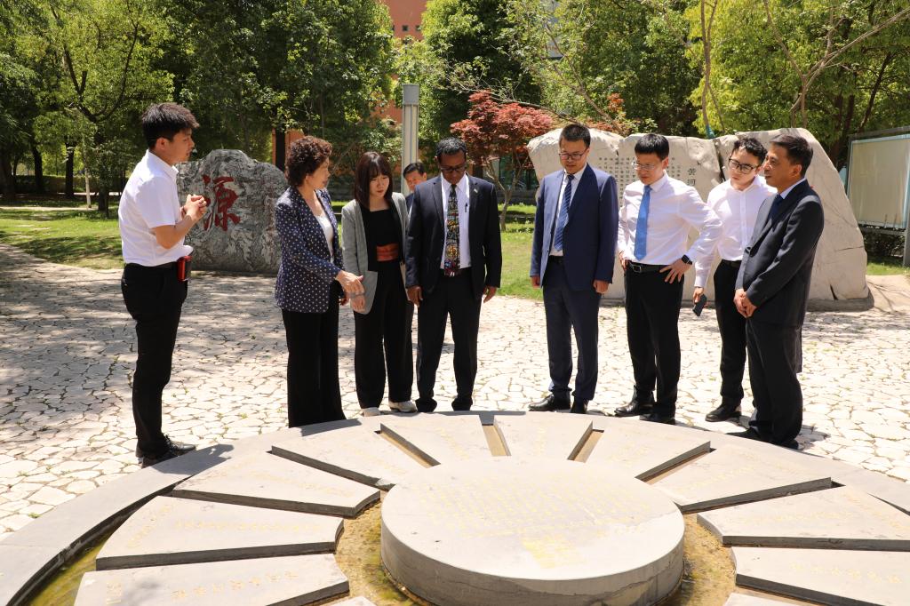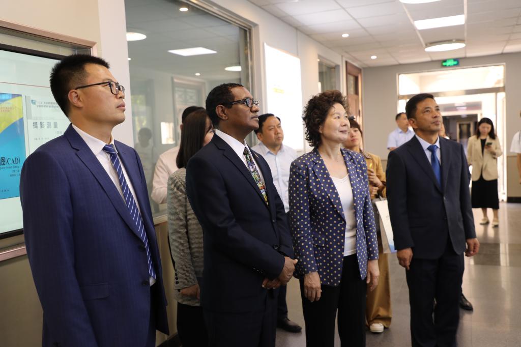 Finally, accompanied by YRCTI’s Party Secretary Zhou Baoping and other leaders, Ambassador Tefera Derbew Yimam, Wang Huaxing, Director of the Office of International Cooperation and Exchange of the Education Department Henan Province, Guo Hua, Deputy Director of the Asia and Africa Affairs Office of the Henan Foreign Affairs, and other guests visited the School of Surveying and Mapping Engineering and the “Footprint” cultural landscape, and gained a detailed understanding of YRCTI’s development history and future plans.