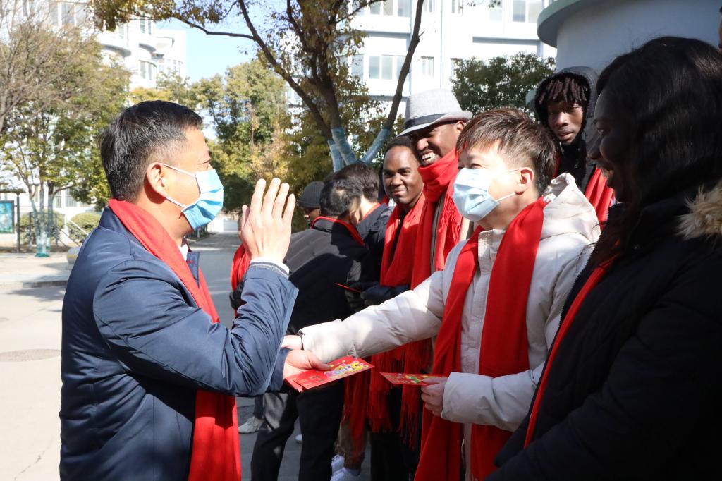 Vice President Jian Haoran presented New Year red envelopes to foreign teachers.