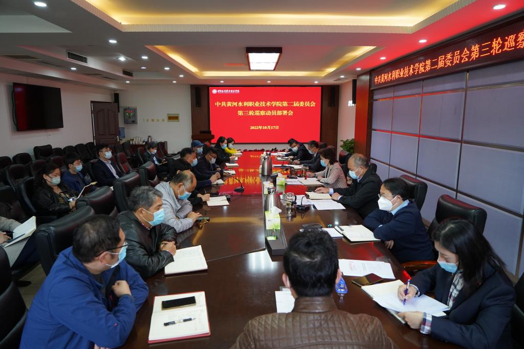 杨士恒传达《中共黄河水利职业技术学院第二届委员会第三轮巡察工作方案》,对巡察工作作具体安排部署,明确了巡察工作的指导思想、巡察内容、时间安排、巡察组组成、巡察步骤和工作要求。