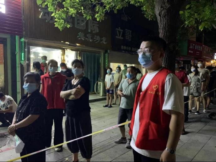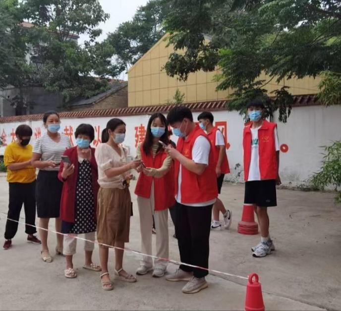 7月28日,由团委书记范龙、社团实践部部长蒋晓絮组织带领13名青年志愿者到开封市复兴社区进行助力社区疫情防控志愿服务活动。活动期间,志愿者们分组在各住宅小区开展疫情防控扫码、指导他人使用手机扫码、帮助社区老年人提供信息登记等志愿服务工作。“请大家戴好口罩、保持间距,入区请自觉扫描场所码”“请大家提前扫描场所码”“请大家打开微信小程序、扫描场所码后方可进入小区.......”。社区部分老年人不会使用手机扫码,志愿者们耐心的为其讲解并演示示范,大家耐心、细致、周到的服务得到了社区群众的一致好评,展现了我校团员青年良好的精神面貌。此次志愿服务活动,志愿者们同街道社区工作人员携手抗疫,在疫情大考中淬炼能力作风,用实际行动践行“奉献、友爱、互助、进步”的志愿服务精神,为打好打赢疫情防控阻击战作出应有贡献。