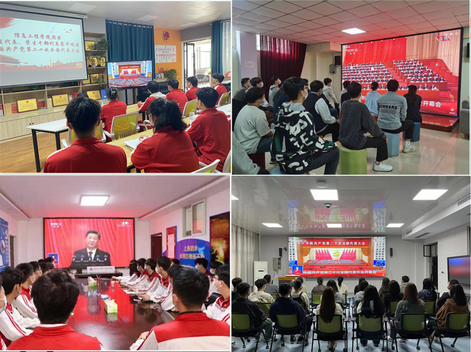 10月16日上午10时,中国共产党第二十次全国代表大会在北京人民大会堂隆重开幕,习近平代表第十九届中央委员会向大会作报告。中国共产党第二十次全国代表大会是在全党全国各族人民迈上全面建设社会主义现代化国家新征程、向第二个百年奋斗目标进军的关键时刻召开的一次十分重要的大会,是党和国家政治生活中的一件大事,具有重大而深远的意义。校党委高度重视师生收听收看党的二十大开幕会盛况工作,要求师生通过集中收看和在工作岗位自行组织收看等多种形式,认真学习领会习近平总书记在党的二十大所作的报告精神。我校集中收看的主会场设在行政楼第一会议室,全体校领导、党委相关部门负责人、各党总支(直属党支部)书记等在主会场集中收看。广大教职工、学生党员、入党积极分子以及广大青年学生在各部门、各单位设立的分会场收看党的二十大开幕会。(供图:各相关部门)
