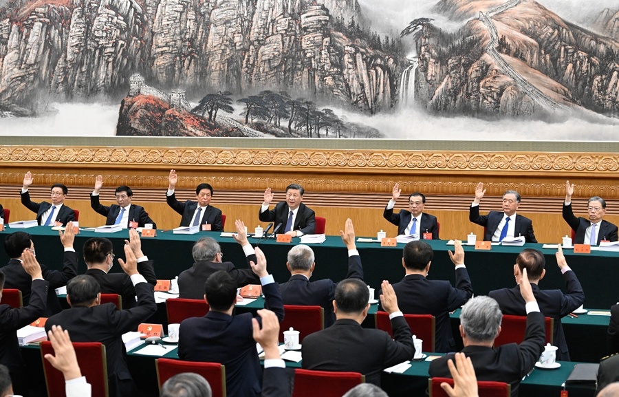 10月18日,中国共产党第二十次全国代表大会主席团在北京人民大会堂举行第二次会议。习近平、李克强、栗战书、汪洋、王沪宁、赵乐际、韩正等出席会议。新华社记者 李学仁 摄