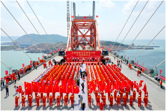 福建省大力弘扬“支部建在连上”的光荣传统,积极推行“把支部建在项目上、把党旗插在工地上”,让党旗在项目一线高高飘扬。图为世界最长、中国首座跨海峡公铁两用大桥——平潭海峡公铁大桥全线合龙贯通暨平潭综合实验区举行“支部建在项目上”仪式现场。