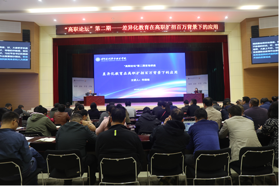 为探索“扩招百万”背景下职业教育改革的着力点,探索解决生源差异环境下的职业教育新模式,10月15日上午,我校邀请中国教育科学研究院研究员、博士生导师、差异化教学的领军者华国栋教授做了题为“差异化教育在高职扩招百万背景下的应用”的专题讲座。这也是我校“高职论坛”系列活动第二期的首场报告。