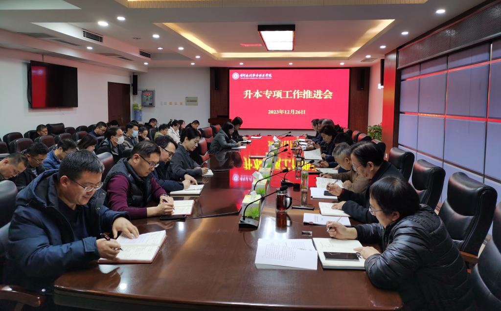 12月26日上午,我校在行政楼第一会议室召开升本专项工作推进会。校领导班子成员及各相关职能部门、院(部)负责人参加会议。会议由校党委书记周保平主持。