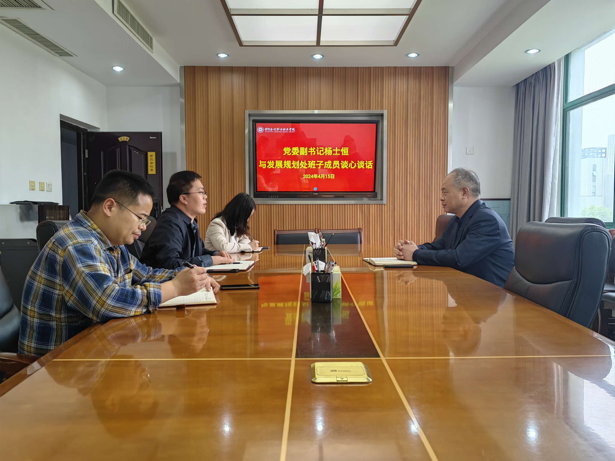 2024年4月15日上午,党委副书记杨士恒在行政楼第三会议室对分管部门发展规划处班子成员开展谈心谈话。