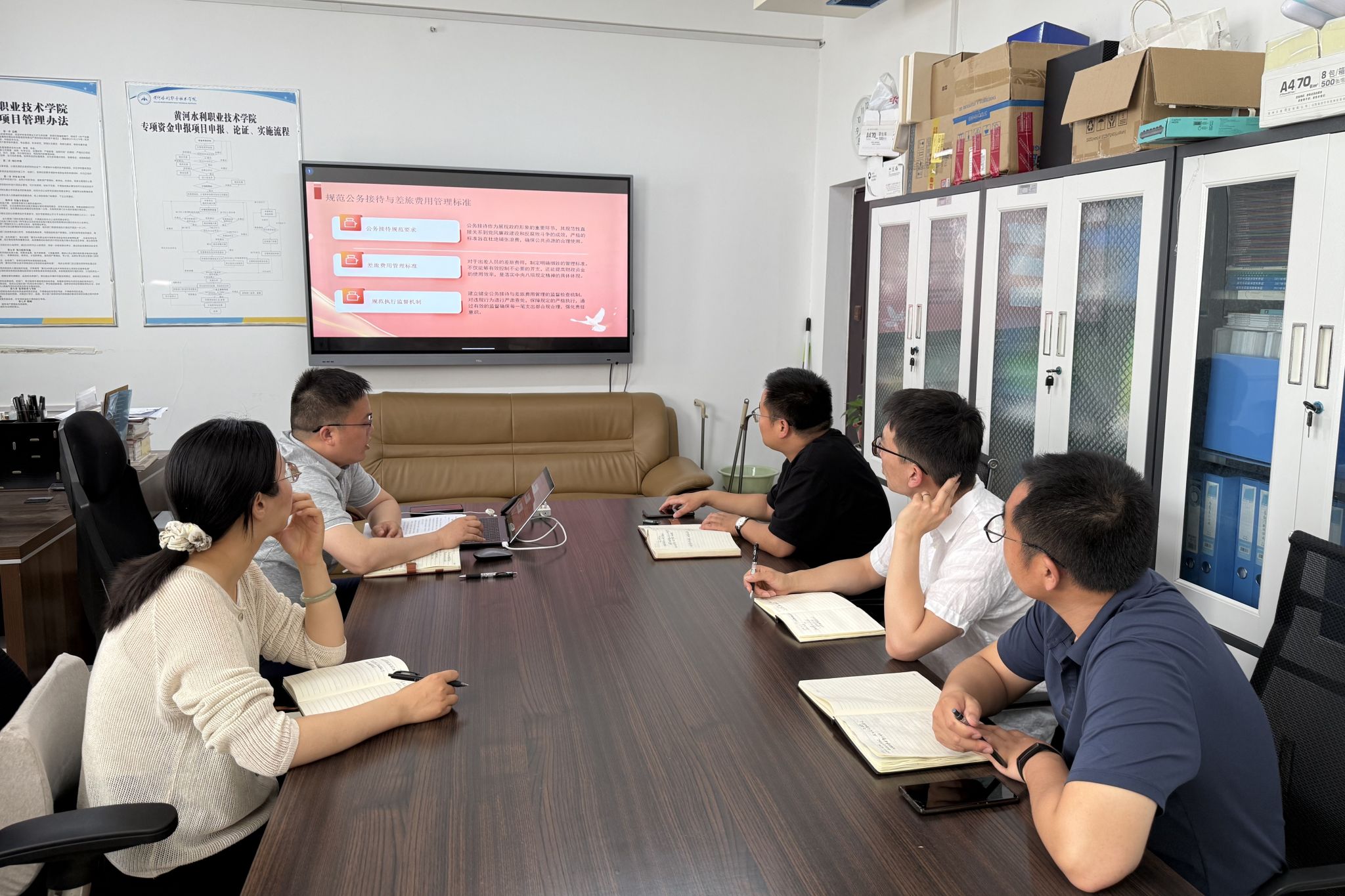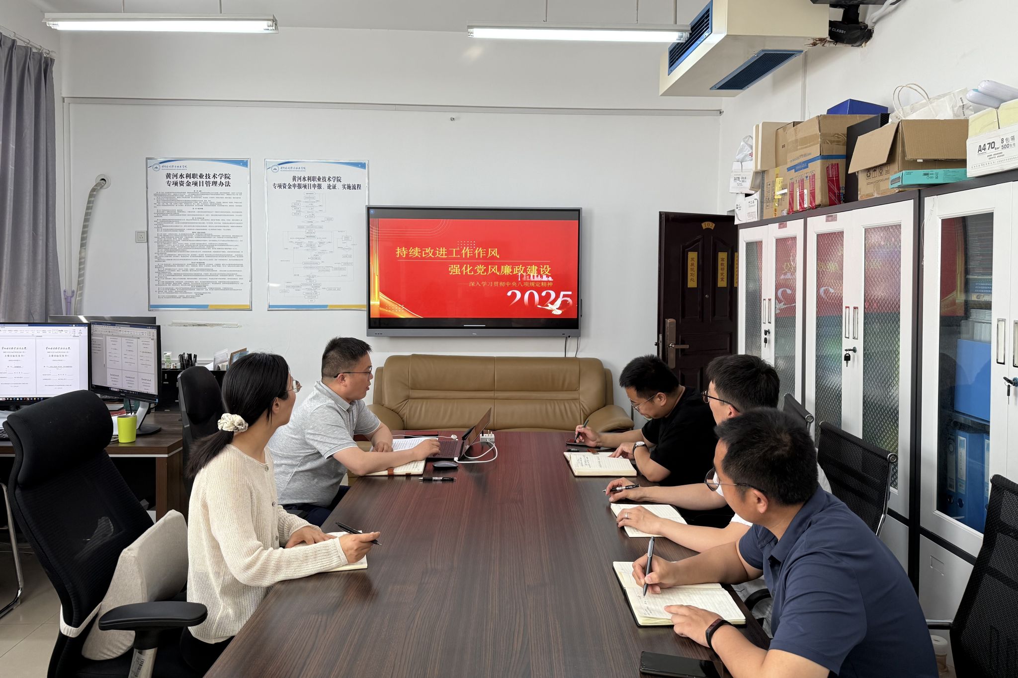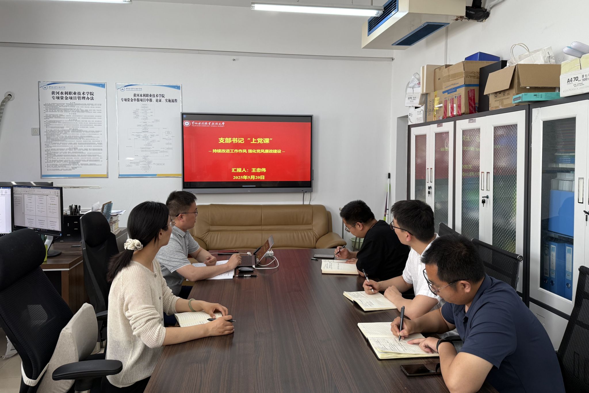 2025年5月20日下午,机关党总支发展规划处支部在行政楼102会议室开展支部书记讲党课活动。支部书记王忠伟主持会议,支部全体在校党员参会。