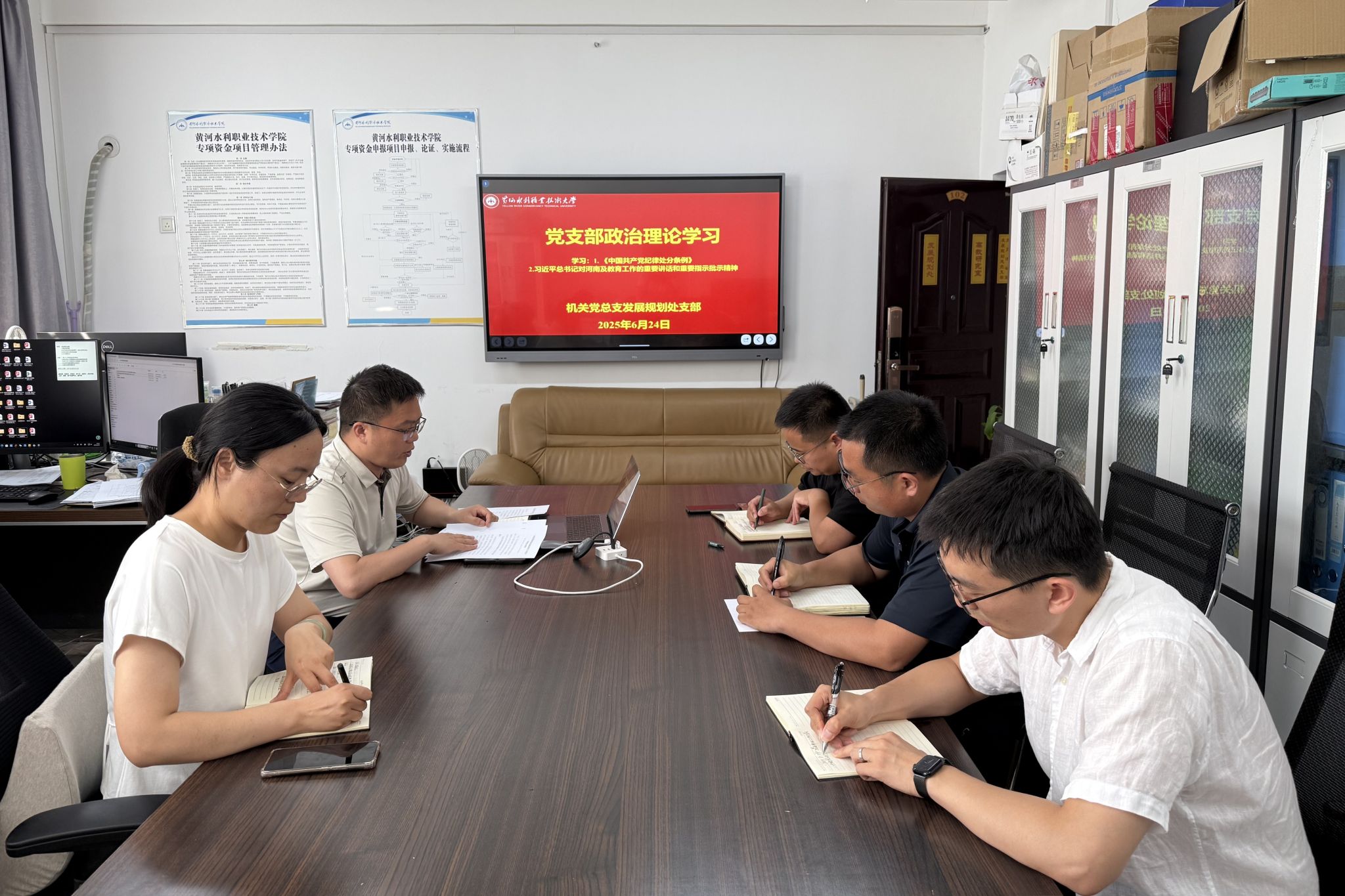 2025年6月24日下午,机关党总支发展规划处支部在行政楼102会议室召开政治理论学习会议。支部书记王忠伟主持会议,支部全体在校党员参会。