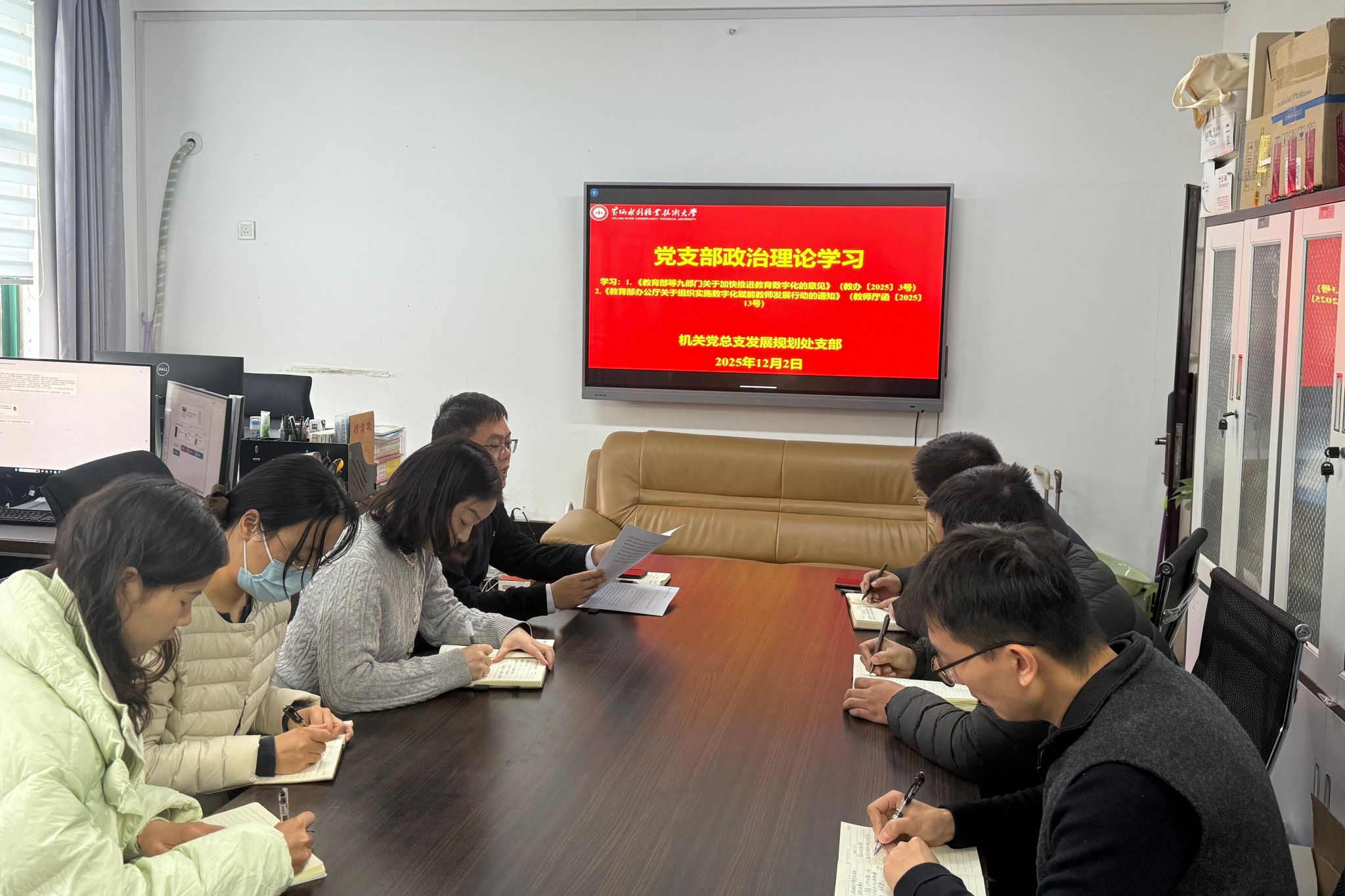 12月2日,发展规划处党支部召开政治理论学习会议,专题学习《教育部等九部门关于加快推进教育数字化的意见》和《教育部办公厅关于组织实施数字化赋能教师发展行动的通知》。会议由支部书记王忠伟主持,支部全体党员参加会议。