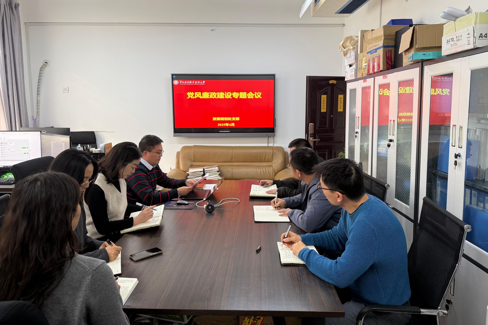 2025年4月18日,机关党总支发展规划处支部在行政楼102会议室召开党风廉政建设专题会议。支部书记王忠伟主持会议,支部全体在校党员参会。