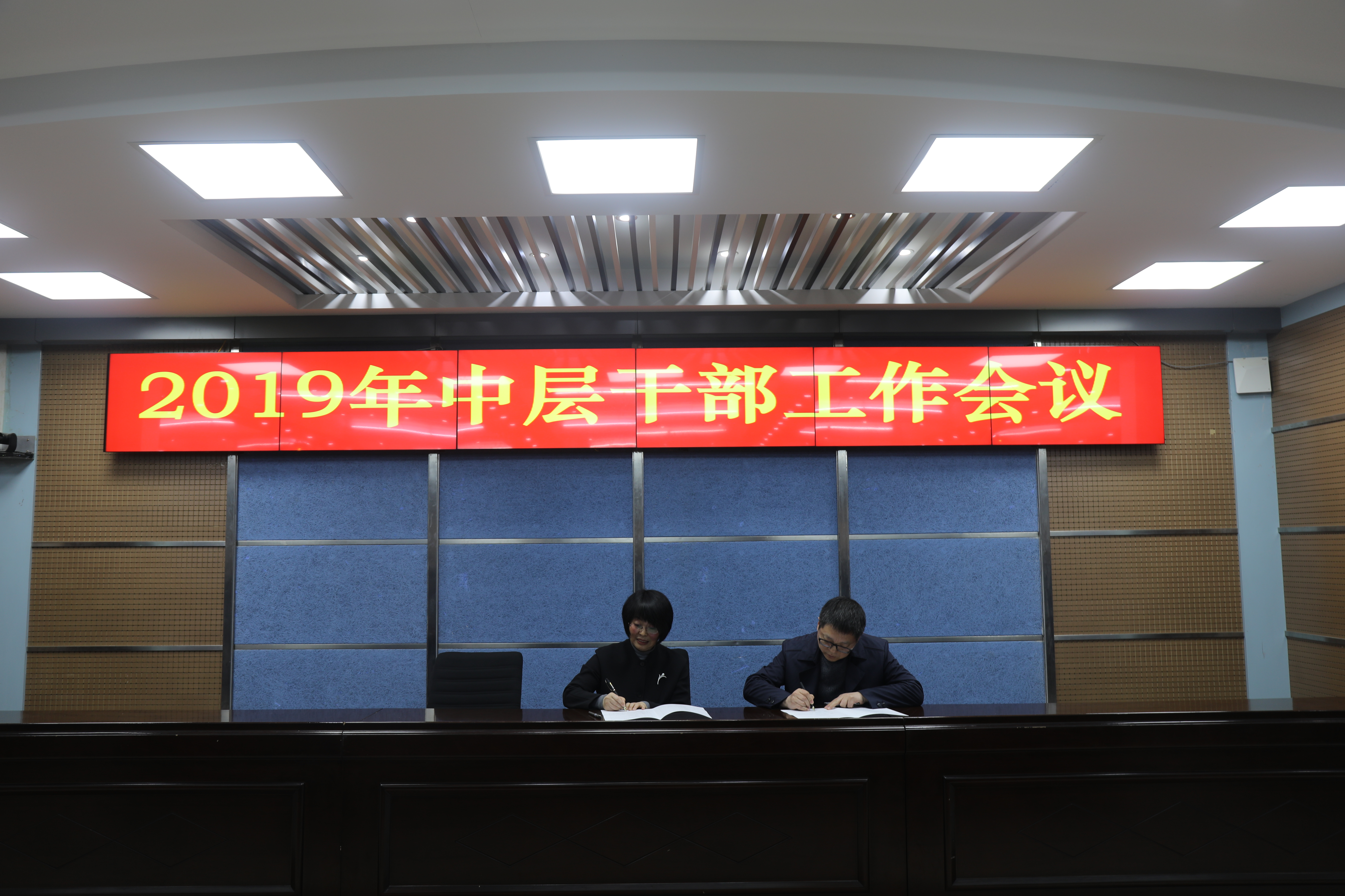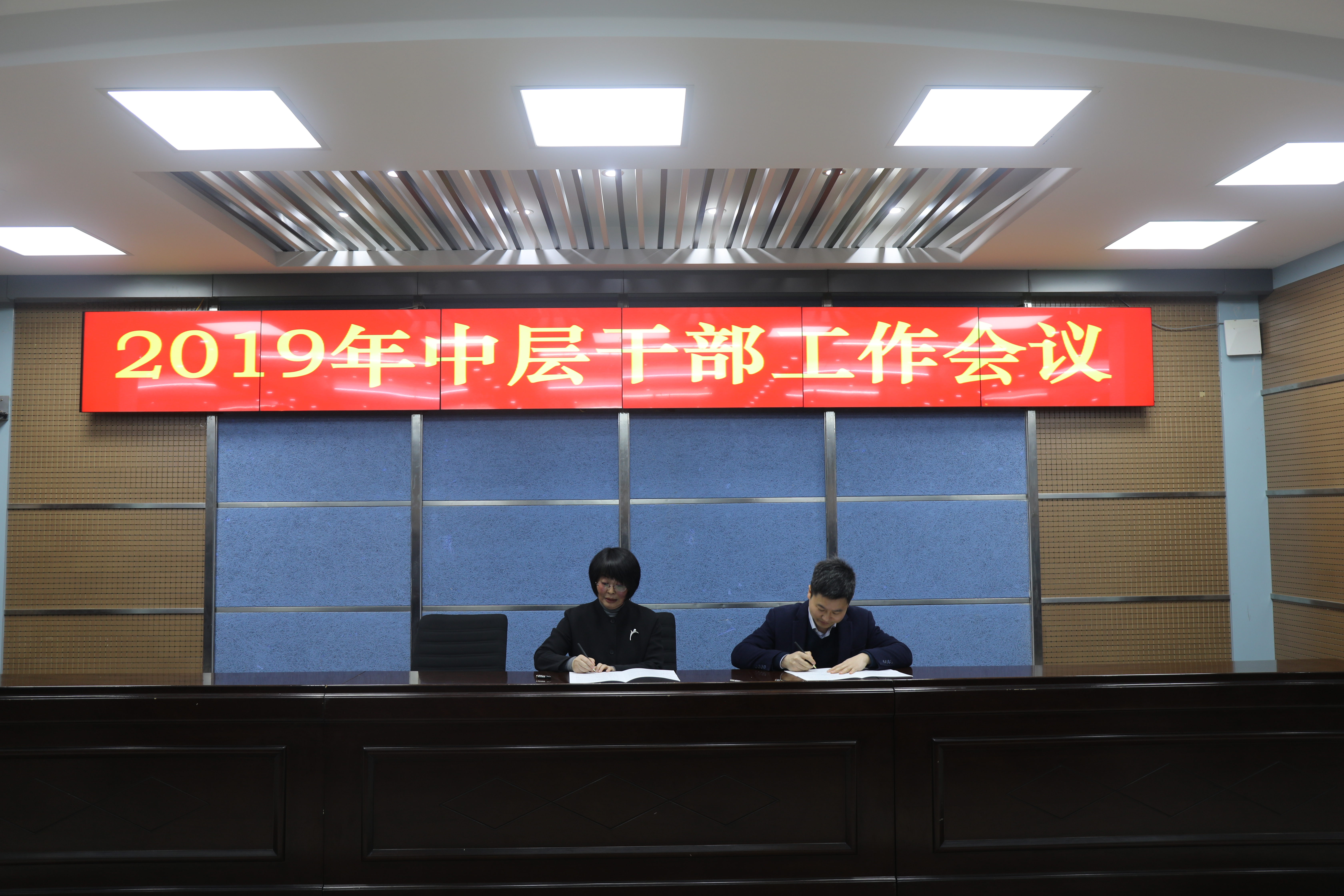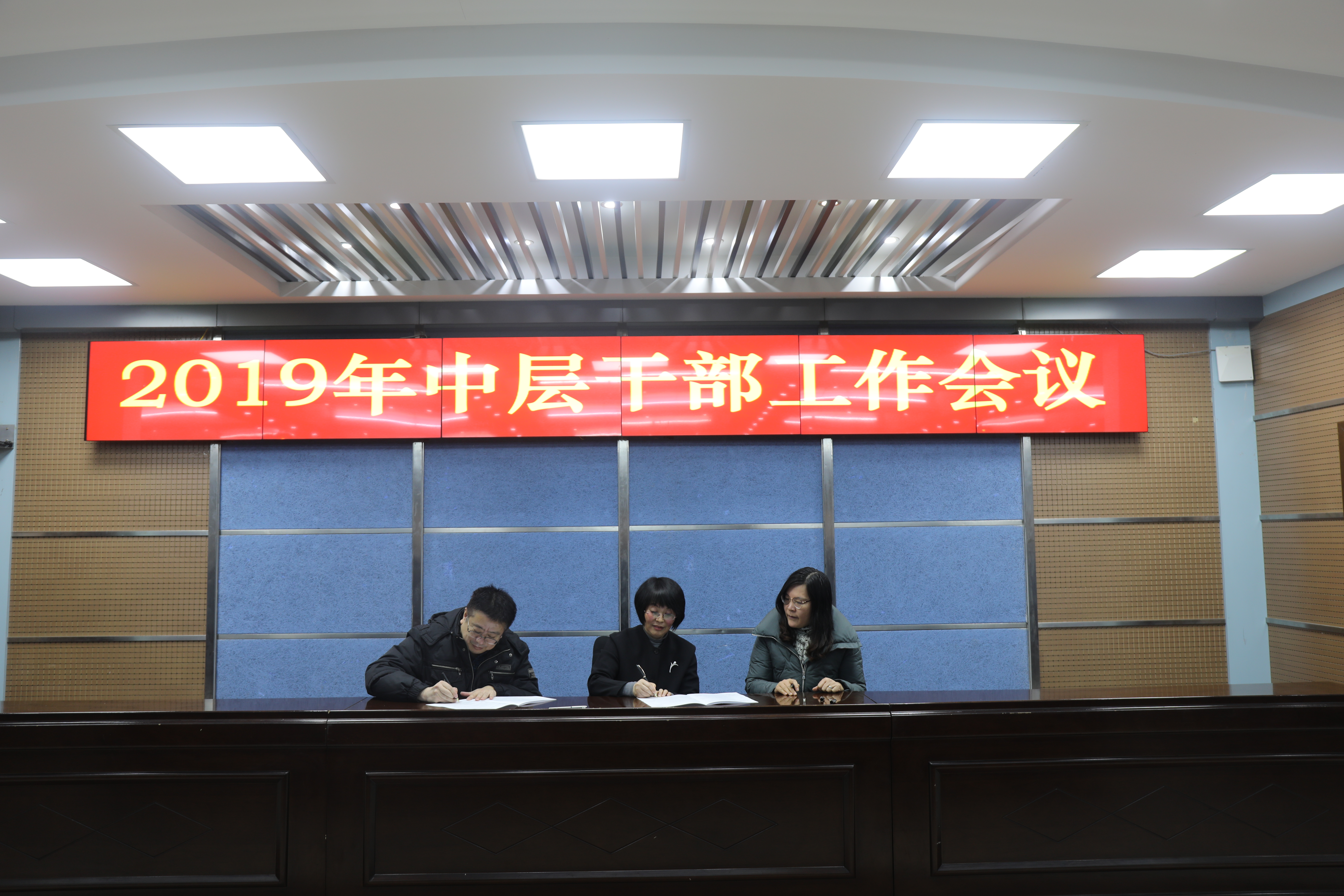 祝玉华代表校党委与部门和单位代表签订了《2019年目标管理责任书》。