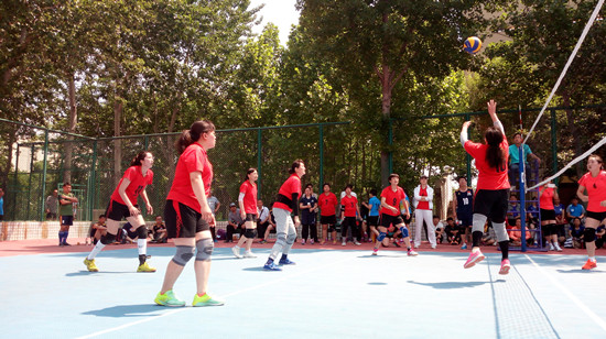 教职工排球比赛是我校传统体育比赛项目,深受广大教职工的喜爱,自2001年举办第一届校教职工排球比赛以来,已连续十六年举办此项赛事。此次省赛优异成绩的取得,与我校领导高度重视职工群众体育活动,大力支持各项文体活动密不可分。2015年,我校成立校排球协会,为教职工切磋球技、运动健身提供了良好平台,本次参赛队员就是从广大排协会员中选出的佼佼者。