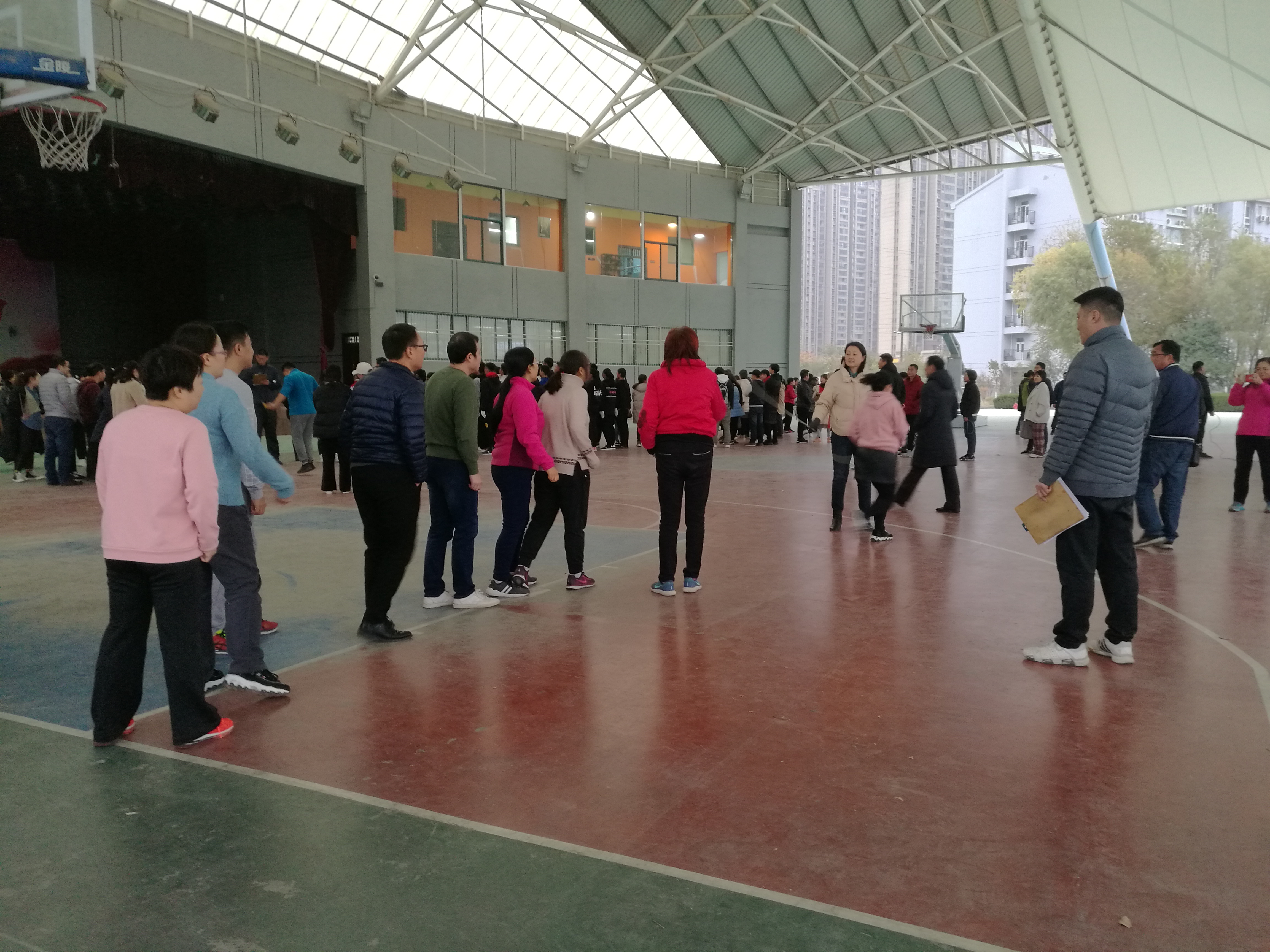11月26下午,我校工会在风雨篮球场组织全校教职工开展跳绳比赛。来自学校16个分工会的队员参加大绳团体赛,近70名教职工参加小绳个人赛。