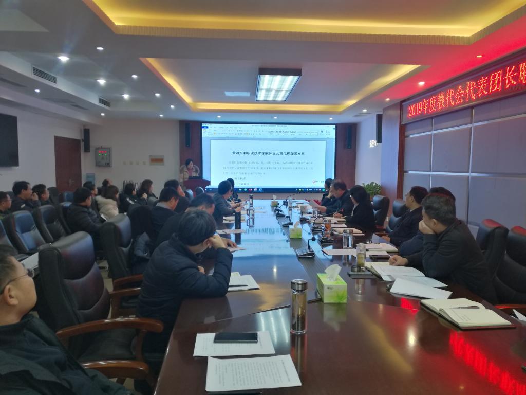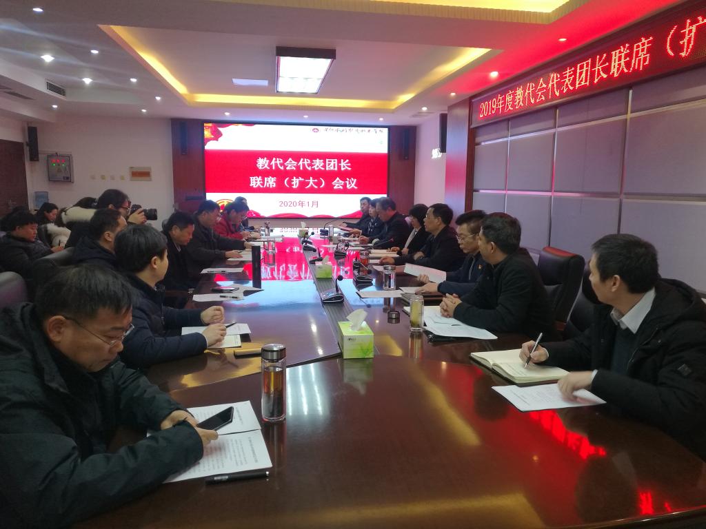 1月10日上午,我校在行政楼二楼会议室召开教代会代表团长联席(扩大)会议。校领导许琰、祝玉华、杨士恒、刘卫锋 、焦爱萍、菅浩然及教代会主席团成员,教代会代表团长、各分工会主席等参加了会议。会议由校工会副主席李文丰主持。