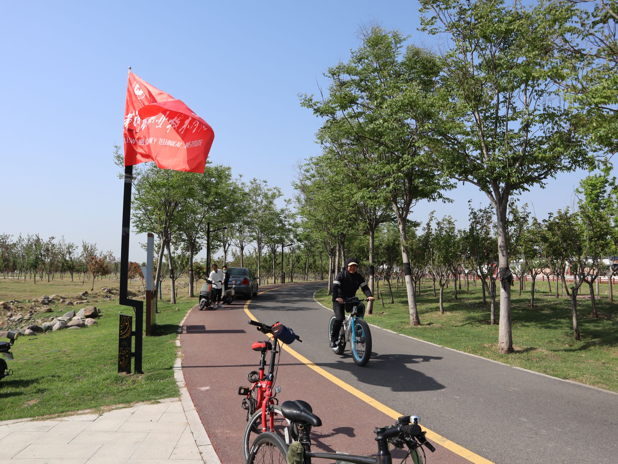 这次户外活动,时间跨度从上午9点一直到下午5点,老师们们可自由结伴而行,也可以分工会为单位组织前往,可选择骑行也可自愿步行,最终到达黑岗口公益生态林西北角小广场。大家一路欢声笑语,相互鼓励,相互照应,欣赏着春日黄河的美景,享受着运动带来的快乐,英姿飒爽的队伍形成了一道独特又亮丽的风景。上午11点左右,越来越多的老师不约而同汇聚在目的地,此时的黑港口阳光明媚,鸟语花香,人声鼎沸,像赶集般热闹欢快。