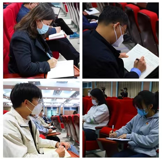 就落实本次报告会精神,杨士恒提出三点意见:一要以这次宣讲为契机,持之以恒抓好学习贯彻党的二十大精神,确保把党的二十大精神覆盖到基层党支部,传达到每一名师生。二要采取多种学习形式,在全校迅速掀起学习宣传贯彻党的二十大精神的热潮。三是要紧密结合学校发展实际,积极推动党的二十大作出的重大决策在学校落地生根、开花结果。(摄影:王红 王睿琳 房林林 杨梦远)