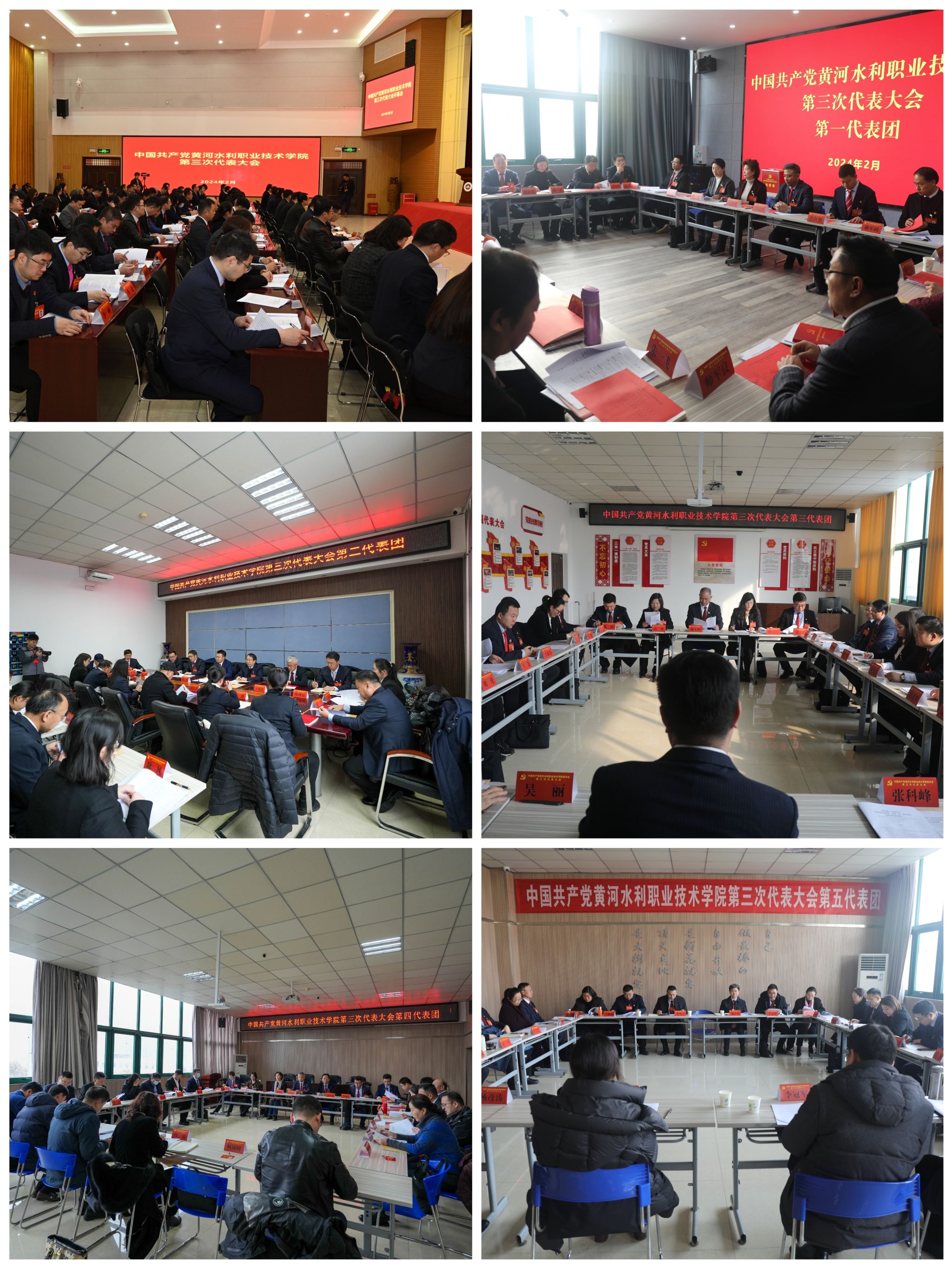 会场气氛庄严热烈。主席台上方悬挂着“中国共产党黄河水利职业技术学院第三次代表大会”会标,帷幕正中悬挂的党徽熠熠生辉,十面鲜艳的红旗分列两侧。