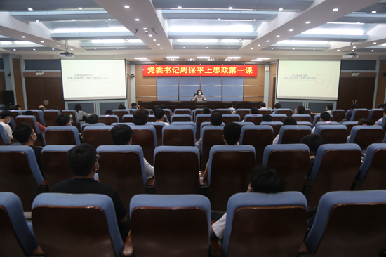 为深入学习贯彻习近平总书记关于统筹推进疫情防控和经济社会发展的重要讲话精神,进一步做好疫情防控期间学生思想政治工作,激发广大青年学生的责任担当,加强爱国主义教育、生命教育、信念教育、科学教育与道德教育,根据省高校工委的相关工作安排,6月4日,校党委书记周保平在3号实训楼3楼报告厅以《沧海横流显砥柱 风雨过后是彩虹》为题为第一批返校师生代表讲授“思政第一课”。