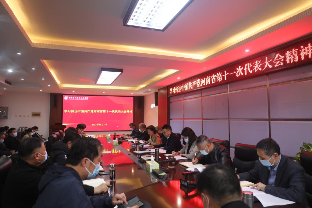 11月1日下午,校党委书记周保平在校党委理论学习中心组(扩大)学习会上传达了中国共产党河南省第十一次代表大会精神,校党委理论学习中心组(扩大)专题学习中国共产党河南省第十一次代表大会精神。全体党委委员、全体中层正职领导参加学习。校长胡昊主持会议。