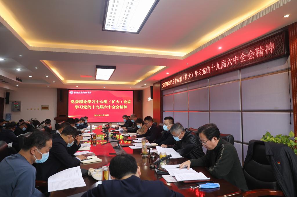 11月24日上午,校党委书记周保平主持召开校党委理论学习中心组(扩大)学习会,专题学习党的十九届六中全会精神。校党委委员,党委职能部门负责人,各党总支、直属党支部书记参会。