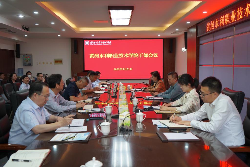 2023年5月31日,学校召开干部会议,宣布省委教育工委决定:朱焕立同志任黄河水利职业技术学院党委委员、副院长,免去黄河水利职业技术学院纪委书记职务;周志琦同志任黄河水利职业技术学院党委委员、副院长,免去党委组织部部长职务;刘许亮同志任黄河水利职业技术学院党委委员、纪委书记,免去党政办公室主任职务。