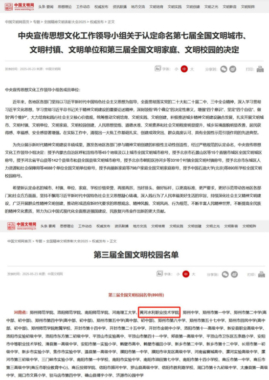 自文明校园创建活动开展以来,学校始终以习近平新时代中国特色社会主义思想为指导,全面贯彻党的教育方针,落实立德树人根本任务,将培育和践行社会主义核心价值观贯穿于教育教学全过程。坚持把文明校园创建作为推动学校高质量发展的重要抓手,精心组织、广泛动员,形成了全校师生共同参与、共建共享的良好局面。在领导班子建设方面,学校领导班子团结协作、务实创新,不断提升办学治校能力和水平,为文明校园创建提供了坚强有力的组织保障。在思想道德教育上,学校通过开展形式多样的主题教育活动,如爱国主义教育、志愿服务活动等,引导学生树立正确的世界观、人生观、价值观,培养学生的社会责任感和奉献精神。阵地建设丰富多彩。学校充分利用校园广播、宣传栏、新媒体平台等宣传阵地,传播正能量,弘扬主旋律。同时,积极组织各类学术讲座、文化活动、社团活动,为学生提供广阔的发展空间,丰富学生课余生活。教师队伍建设成效显著。学校高度重视师德师风建设,通过开展师德培训、教学竞赛等活动,提升教师的职业道德素养和教育教学能力,涌现出一批师德高尚、业务精湛的优秀教师。校园文化建设特色鲜明。学校以黄河文化为底蕴,打造黄河工程文化长廊等具有黄水特色的校园文化品牌。举办学校优秀校友吴祖泰事迹展、黄河文化节、水利文化展览等活动,传承和弘扬黄河文化,增强师生的文化自信和认同感。在整洁优美环境打造上,学校加大校园基础设施建设投入,先后打造“桃李园”“梅园”“银杏大道”等特色园地,不断优化校园环境,加强校园绿化、美化、净化工作,为师生创造了舒适宜人的学习和生活环境。