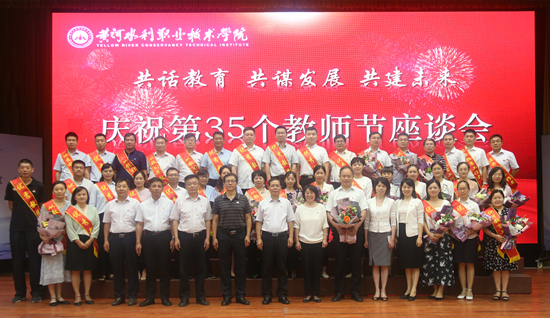 9月10日,我校在学生活动中心报告厅隆重召开庆祝第35个教师节座谈会。校领导许琰、祝玉华、王卫东、杨士恒、刘卫锋、焦爱萍、菅浩然和党委委员谷献晖、于兆国等出席座谈会。教师代表、党委职能部门负责人、各党总支(直属党支部)书记等参加座谈会,会议由校党委副书记、校长祝玉华主持。