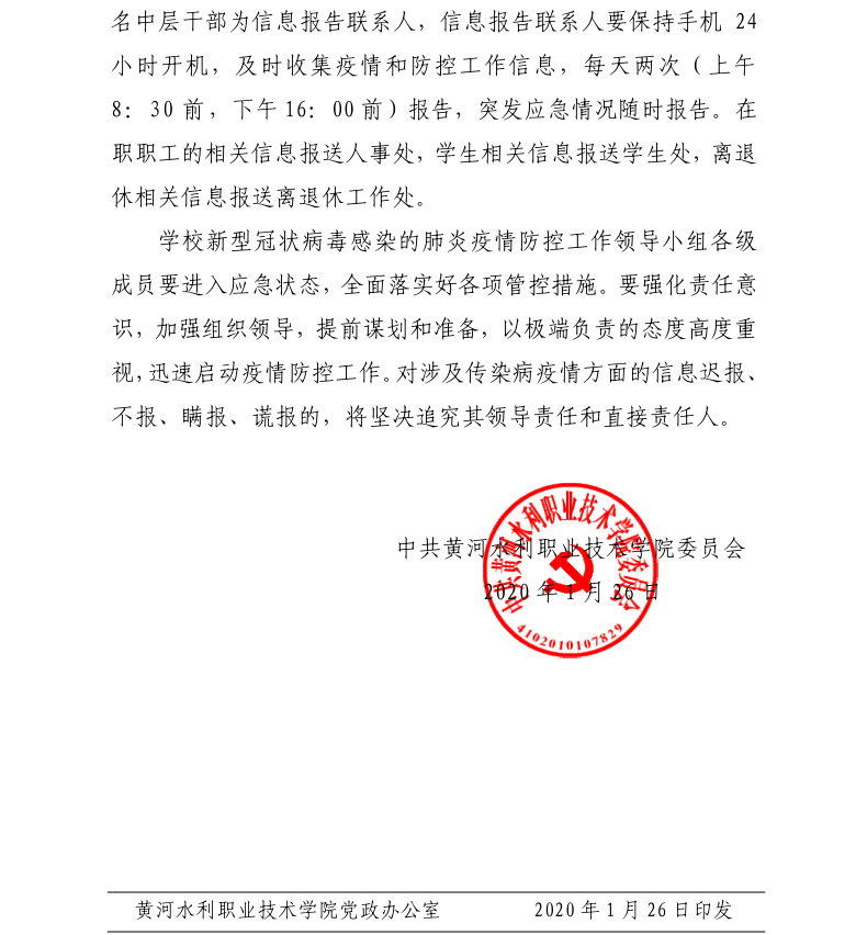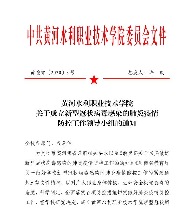 黄河水院新型冠状病毒感染的肺炎疫情防控工作通告(第1号)