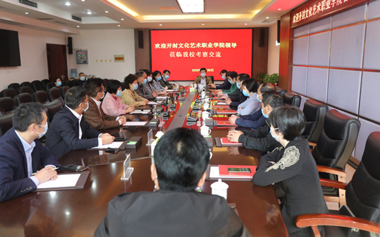 4月28日上午,开封文化艺术职业学院党委书记任洪河、校长沈洁霞等一行9人来我校考察交流。全体校领导以及党政办公室、党委组织部、党委宣传部等部门负责人在第二会议室与来宾进行了座谈交流。