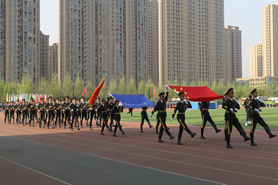 伴随着慷慨激昂的《运动员进行曲》,国旗护卫队、彩旗队裁判员队、代表方队依次走过主席台前,他们步伐整齐、口号嘹亮英姿飒爽以不同形式展示各自方队的特色,展现出我校学子团结拼搏、昂扬进取的精神风貌。