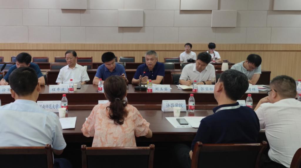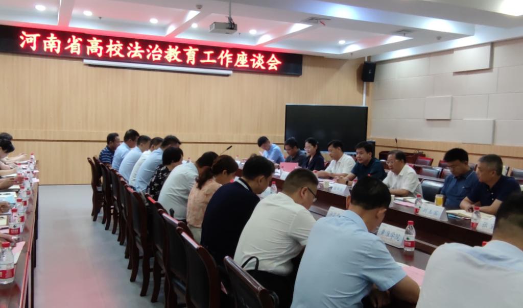 2021年7月13日上午8点30分,全省高校法制教育工作座谈会在周口师范学院闻韶堂四楼学术报告厅召开。参加会议的有:教育厅政策法规处处长徐军保、政策法规处二级调研员张宝柱、政策法规处干部何增辉、《河南教育》副主编马孝民以及全省高校分管政法教育工作领导、负责人。会议由张宝柱主持,我校副校长刘玉宾参加会议。