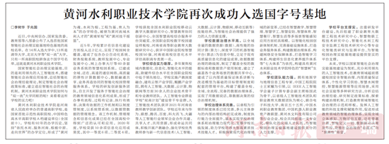 河南日报:黄河水利职业技术学院再次成功入选国字号基地