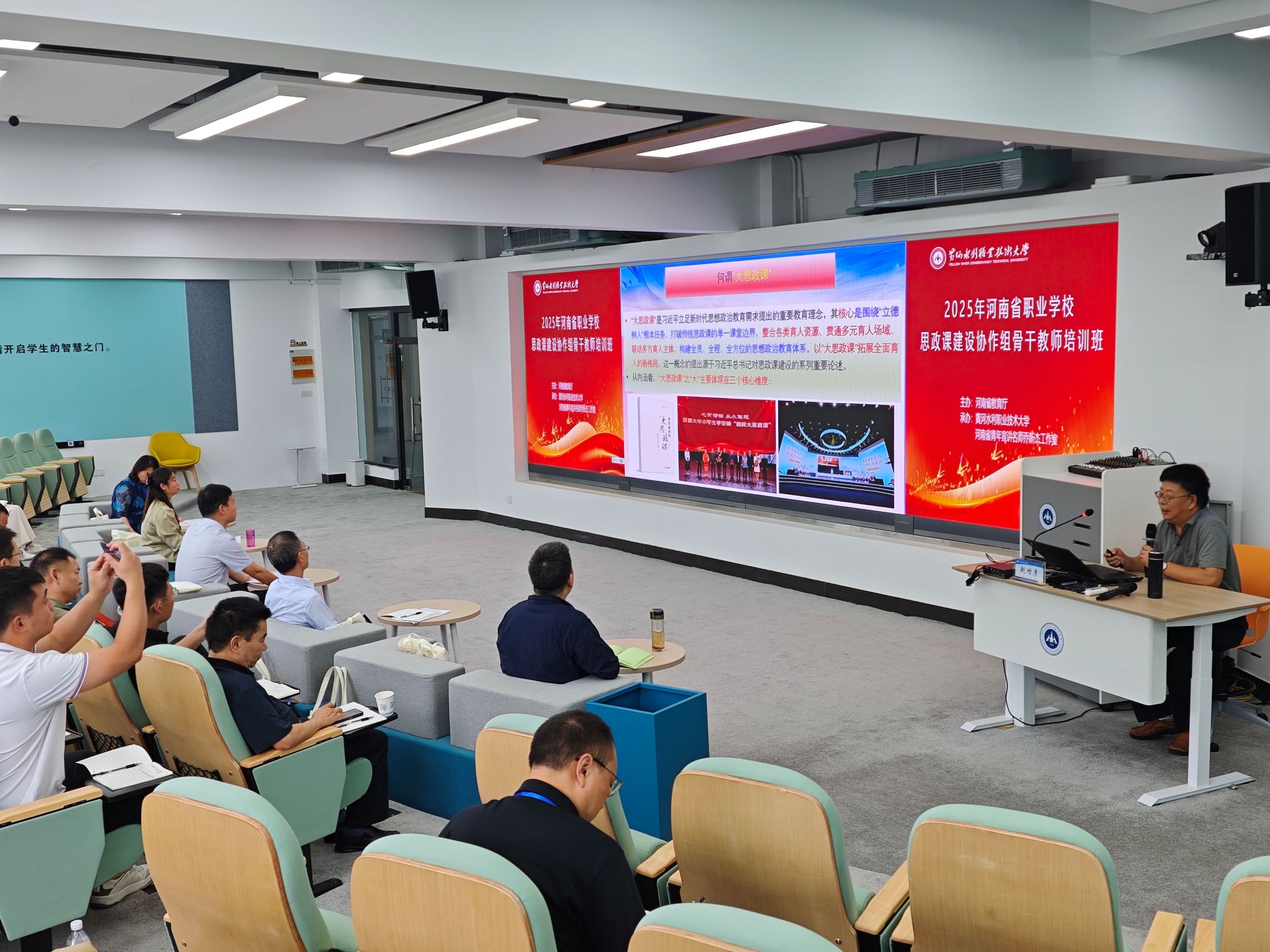 开班仪式上,按照教育部相关文件精神和河南省教育厅的安排部署,在河南省职业学校思政课建设协作组的基础上,成立了11个区域中高职思政课一体化建设协作组。开封大学、开封文化艺术职业学院、开封职业学院、河南地矿职业学院等院校代表参加了会议交流。随后,高等教育出版社原副社长、中国职业技术教育学会监事会副监事长陈建华作了主题为《中职学校思想政治课程标准解读》的报告。