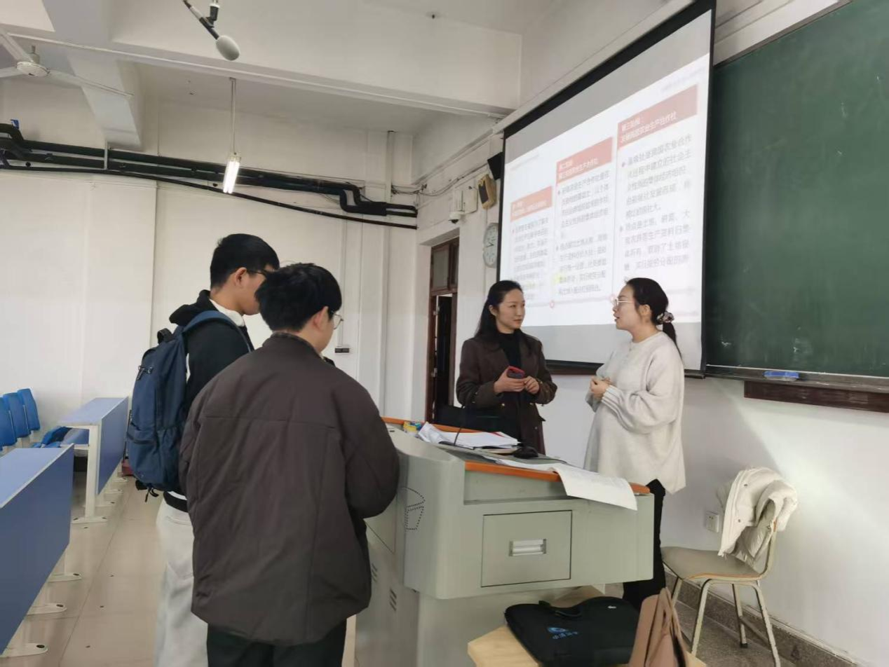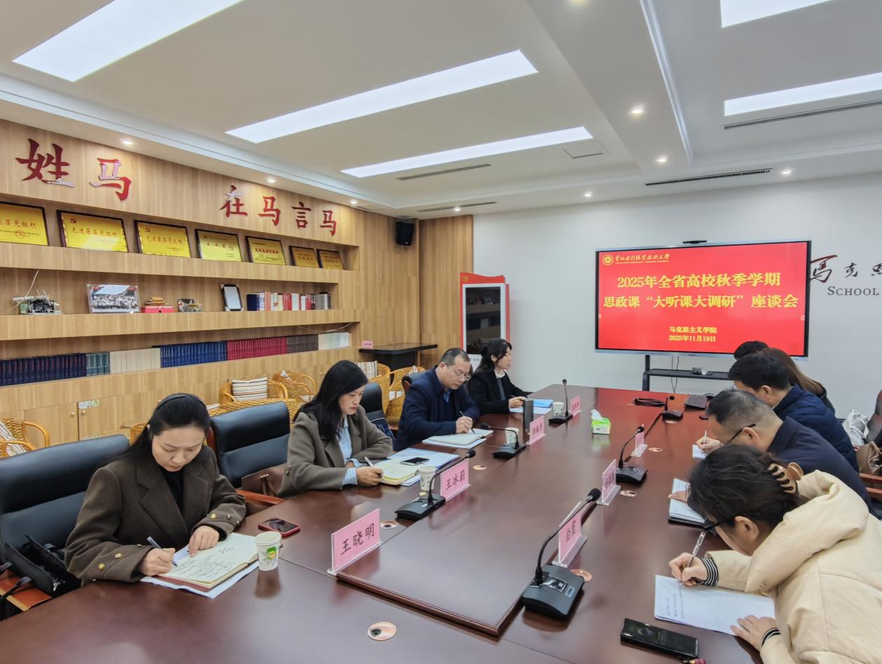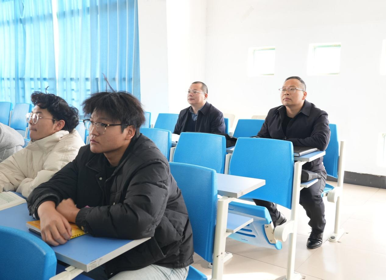 按照中共河南省委教育工委办公室 河南省教育厅办公室《关于开展2025年度全省高校秋季学期思政课“大听课 大调研”活动的通知》要求,11月19日上午,第六调研组专家河南理工大学马院党委书记洪振涛、河南科技学院马院院长王冰蔚、信阳农林学院马院党总支书记王晓明、河南应用技术职业学院马院院长张振华到我校开展思政课听课调研工作。马克思主义学院领导班子成员参与听课调研。