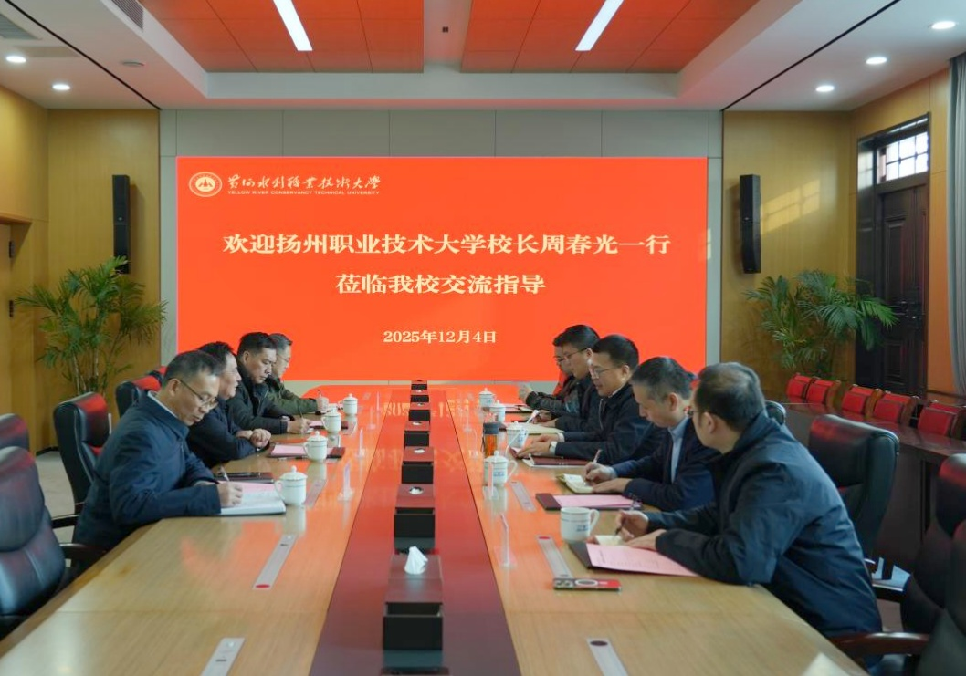 周春光对我校在职业教育方面取得的显著成效表示赞赏。他介绍了扬州职业技术大学在服务区域产业发展、推动专业升级、探索人才培养等方面的实践与思考。他表示,此次调研旨在学习借鉴黄河水利职业技术大学在职业本科教育领域的先进理念与务实举措,共同应对职业本科教育发展中的共性挑战,系统谋划未来一个时期,特别是“十五五”期间职业本科教育的改革创新路径。