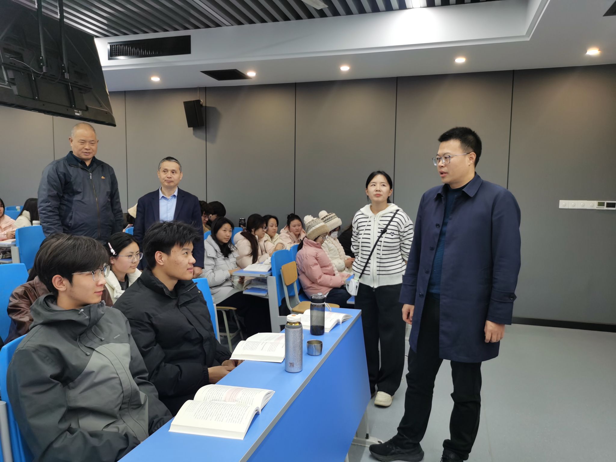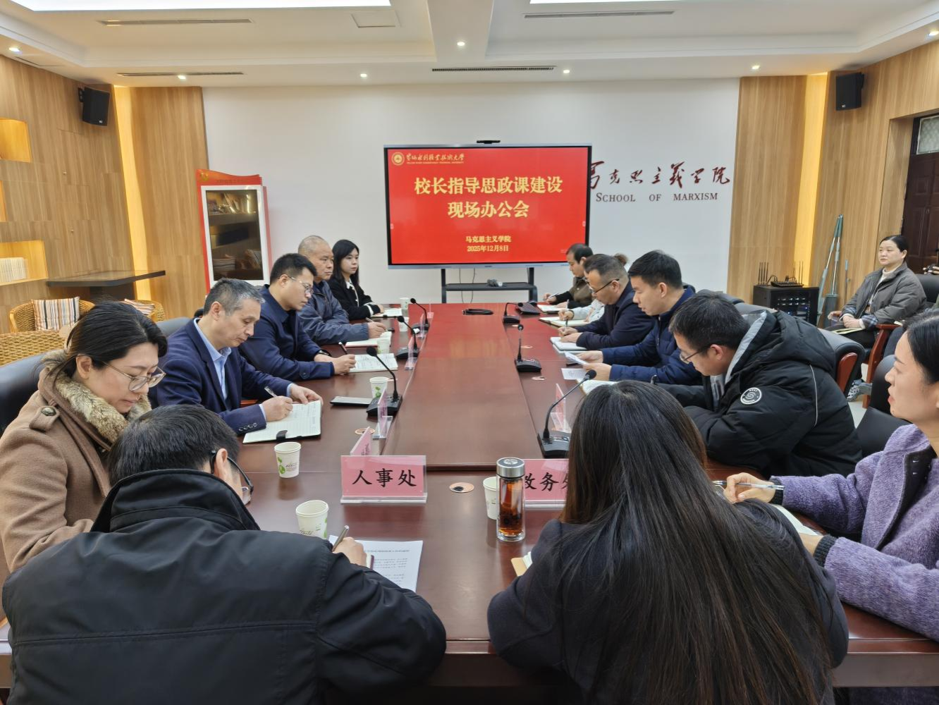 会前,胡昊深入思政课堂,随机听了马克思主义学院青年教师母延雪讲授的《毛泽东思想和中国特色社会主义理论体系概论》课,勉励青年教师要认真备课,将党的二十届四中全会精神融入思政课教学,以扎实的学识为学生讲好中国特色社会主义取得的举世瞩目成就。