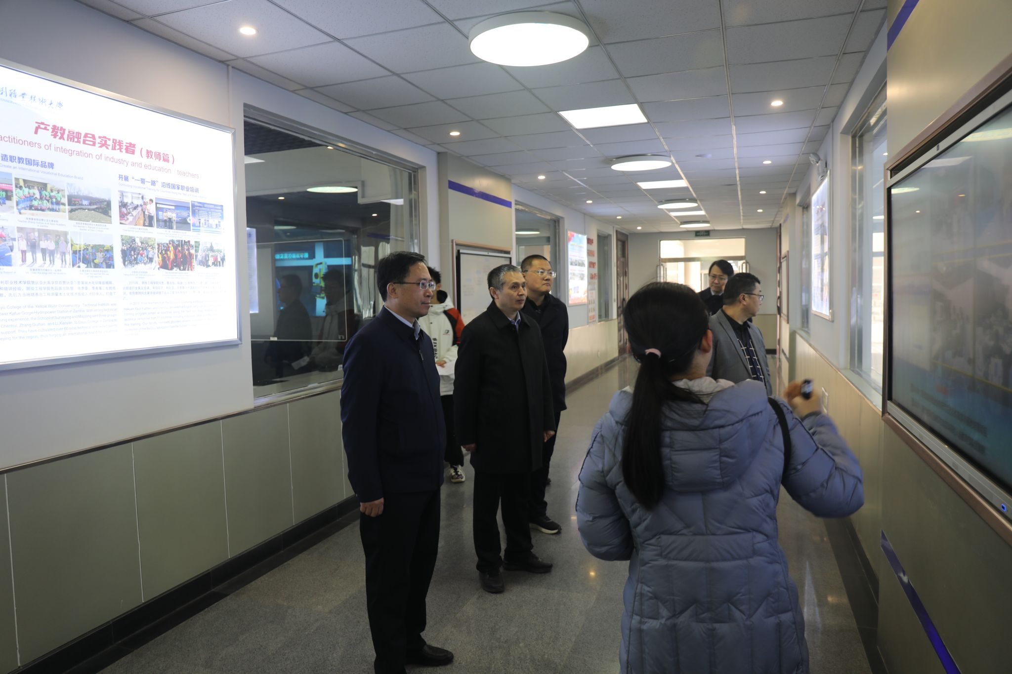 会前,李峰一行实地考察了我校高水平实训基地、“足迹”校史文化景观、鲲鹏山水利工程仿真实训基地、黄河工程文化长廊等场所。