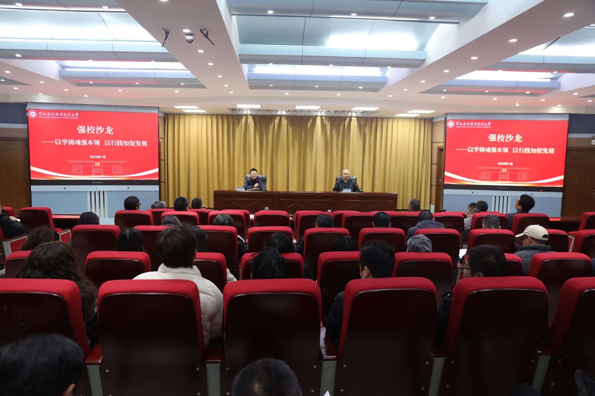 1月13日,我校在3号实训馆学术报告厅举办首期强校沙龙。校长胡昊出席并讲话。沙龙由党委副书记、工会主席杨士恒主持,全体校领导和中层干部参加。