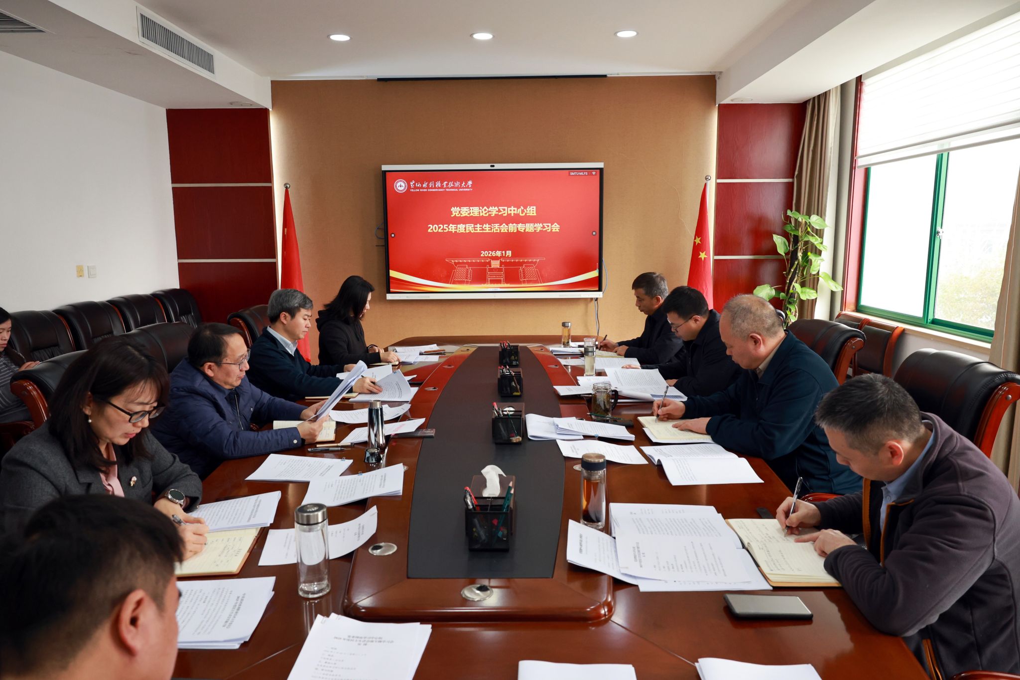 1月28日,我校党委理论学习中心组举行2025年度民主生活会前专题学习会。会议聚焦深入学习贯彻习近平新时代中国特色社会主义思想和党的二十届四中全会精神,认真学习领会习近平总书记在中共中央政治局民主生活会上、在二十届中央纪委五次全会上、在考察河南时的重要讲话精神等,深入开展交流研讨,为高质量开好2025年度民主生活会筑牢坚实思想基础。党委理论学习中心组全体成员参加会议。会议由校长胡昊主持。