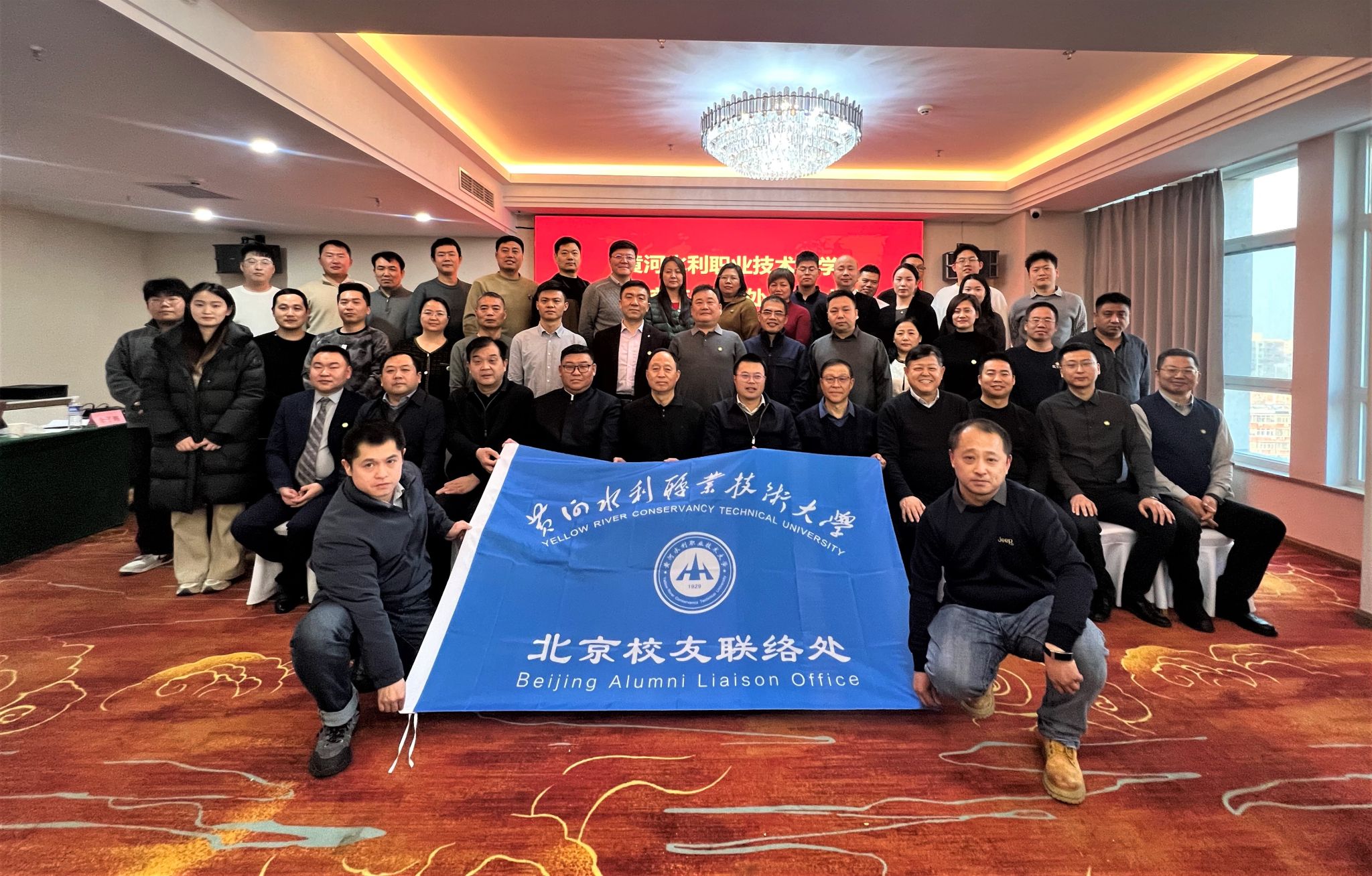 1月31日,黄河水利职业技术大学北京校友联络处成立大会在北京顺利召开。校长胡昊、校友会会长赵国训、常务副会长王卫东、秘书长李纪宾、对外联络与合作处处长姬尧、兄弟高校校友会嘉宾及在京各界校友代表参加此次大会。