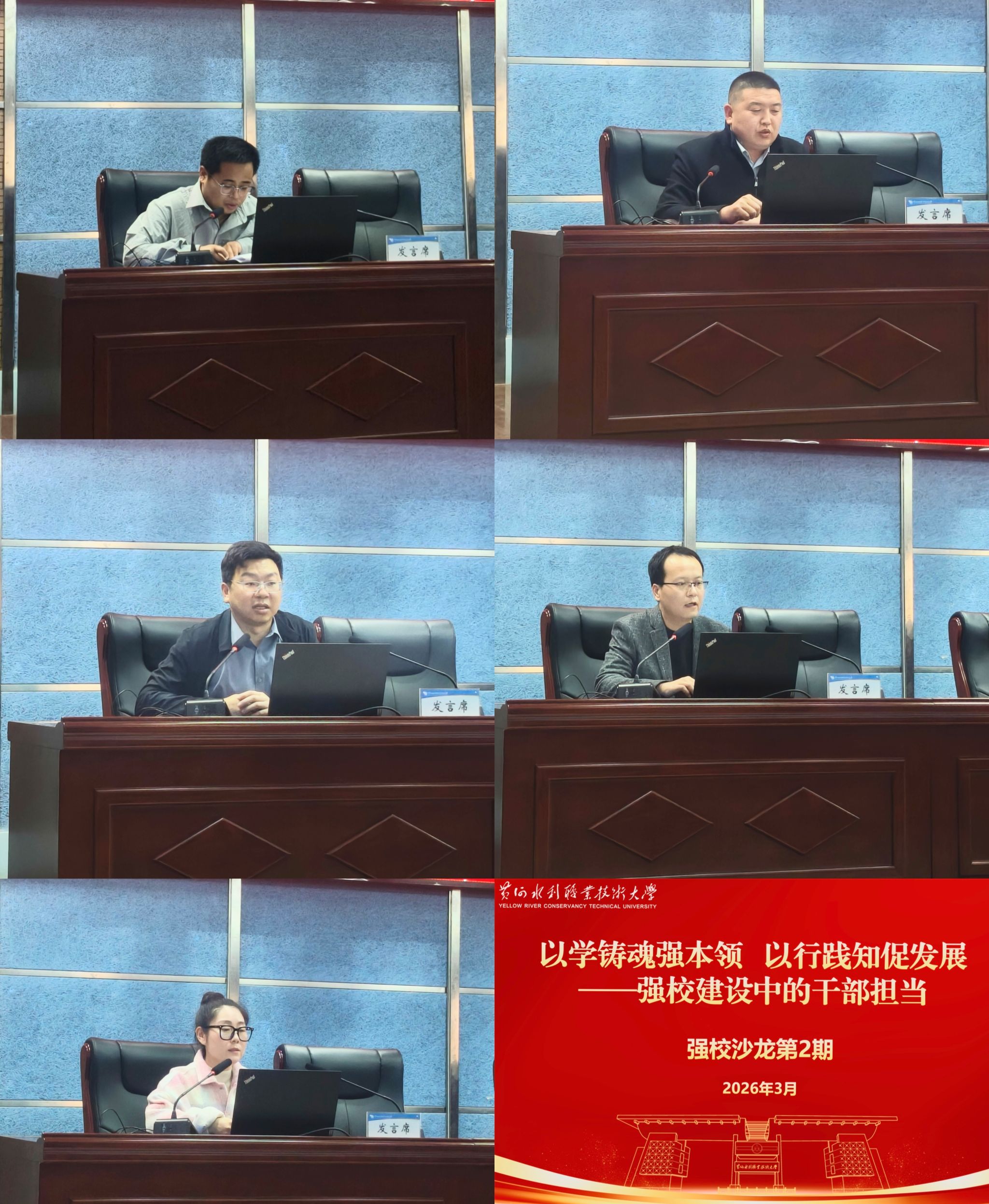来自发展规划处、基本建设办公室、土木与交通工程学院、机械工程学院、信息工程学院的5名干部分别以《一张蓝图绘到底,做主动作为的中层干部》《以行践知促发展——以数智化产教融合实训中心项目为例》《寒冬破茧除旧弊,强本固基迎曙光——学院转型发展之路》《基于服务区域产业发展的职教本科专业建设路径——以新能源汽车专业群为例》《特色发展,生态赋能——信息工程学院在人工智能专业群建设中的探索与实践》为题,作分享交流。5位同志结合树立和践行正确政绩观学习教育的心得体会,分享对工作的思考,这既是树立和践行正确政绩观的具体实践,也是学校适应新形势、服务发展新需求的创新举措。