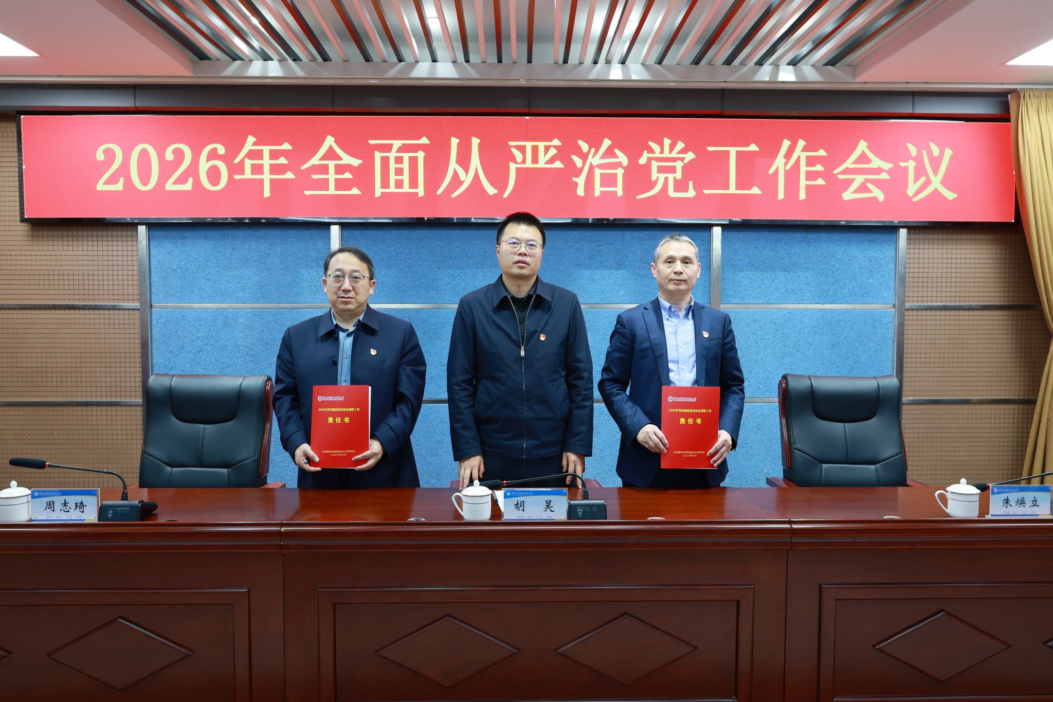 3月30日,我校在3号实训楼学术报告厅召开2026年全面从严治党工作会议。会议深入学习领会习近平总书记在二十届中央纪委五次全会上的重要讲话和全会精神,回顾总结过去一年学校全面从严治党工作,研究部署2026年重点任务,签订《党风廉政建设与反腐败工作责任书》。全体校领导出席会议,全校中层干部参会。会议由党委副书记、工会主席杨士恒主持。